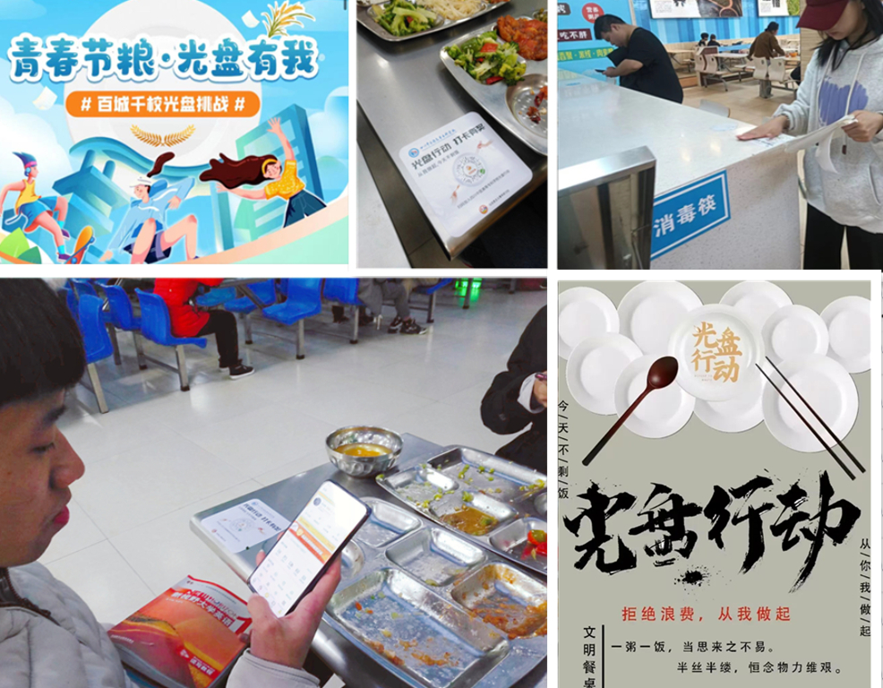 (一)活动的组织开展。“一粥一饭,当思来之不易;半丝半缕,恒念物力维艰。”“谁知盘中餐,粒粒皆辛苦。”习近平总书记多次作出指示批示,强调“要求厉行节约、反对浪费。”为弘扬勤俭节约的优良传统,引导广大学生发扬艰苦奋斗、勤俭节约的作风,养成健康文明的生活习惯,深入学习宣传贯彻习近平文化思想,就是要把传承中华优秀传统文化中“文明有礼、勤俭节约、珍爱粮食、艰苦奋斗”的优良传统入脑入心。通过节约粮食,健康生活,从身边做起。通过此次活动,能更好地向全校师生宣传光盘行动的意义和理念,从而在学校中营造出一种节约、环保、绿色、低碳的氛围,促进全校师生参与其中践行新发展理念,共同推动社会的可持续发展。青马社通过大力宣传引导同学们扫码关注公众号小程序,加入我校群组后每次用餐结束直接拍照打卡,提交光盘照片持续完成21天打卡后获得证书,凭借证书获取第二课堂加分认定,同时对表现优秀学生按照排名颁发“节约小明星”奖状。