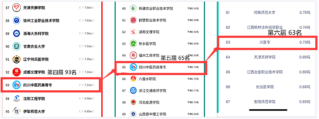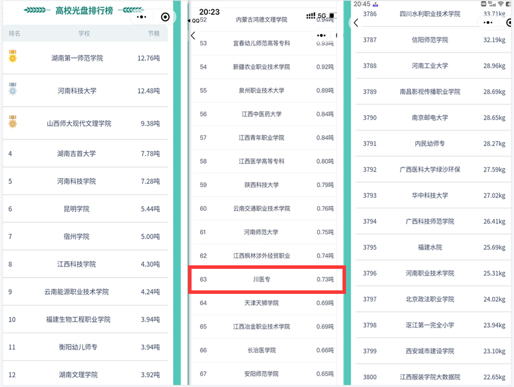 我校连续三届跻身“光盘行动”全国百强,久久为功,在全校师生努力下理论节约粮食0.73吨位列高校全国排行榜第63位、四川榜第7位、绵阳榜第1位,从全国排名第四届93名到第五届65名,再到第六届63名,通过活动在努力中提高,充分展现我校师生节约粮食新风尚,弘扬传承了勤俭节约的中华优秀传统美德,树立绿色低碳生活的新发展理念。