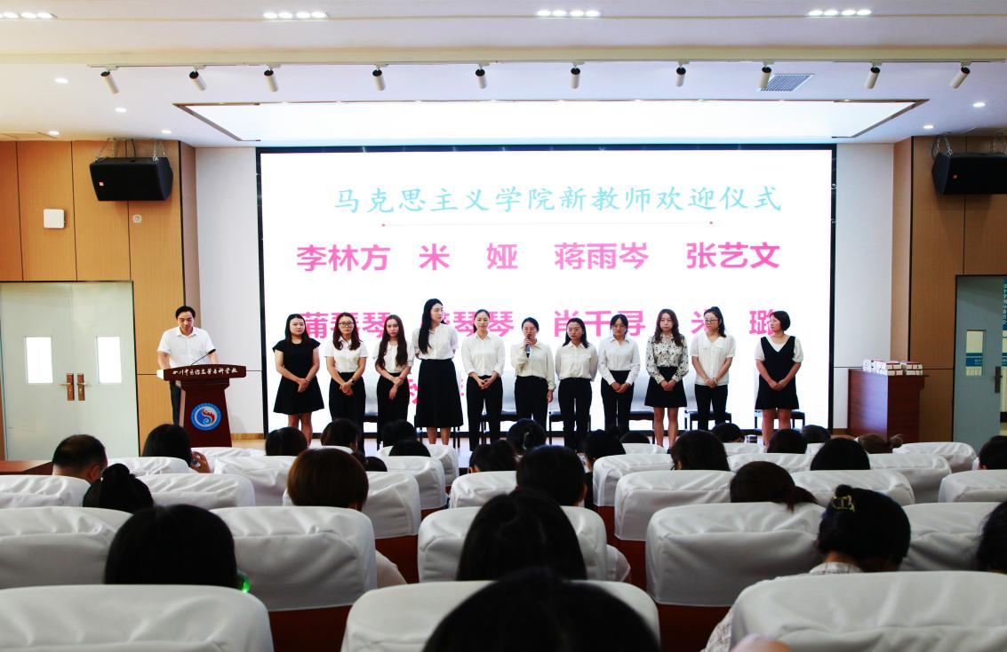 (一)新教师欢迎仪式。在热烈掌声中,十一名新教师统一上台集体亮相,分别做了自我介绍,加深了与会教师对新教师的了解。新教师纷纷表示:加入马院大家庭既高兴又深感使命在肩,希望能为学校高质量发展作出自己应有贡献。