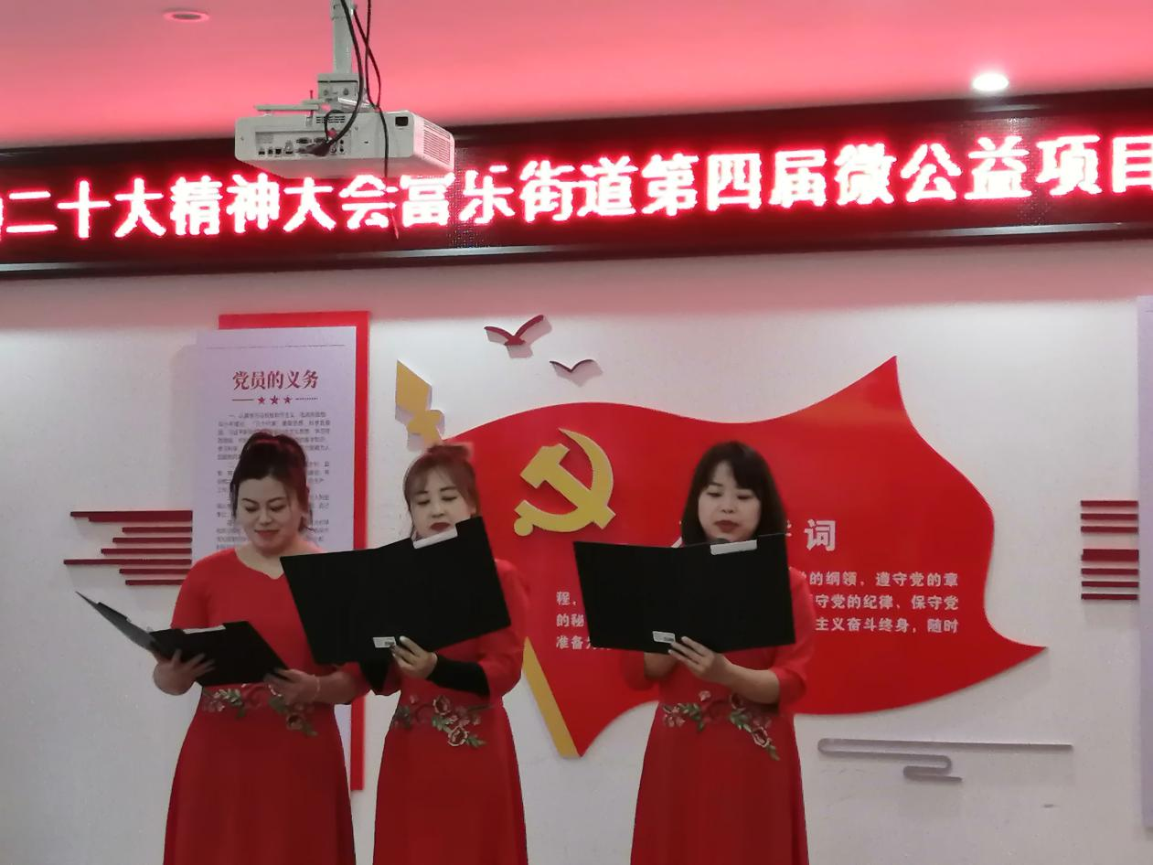 马克思主义学院教师与社区文艺团队共同表演了精彩的文艺节目。段青青、刘薇、张羽老师精心编排表演了诗朗诵《中国、中国、我为你骄傲!》,符红川教授独唱京剧、歌剧串烧《江姐》选段《红梅赞》等节目,迎来一阵阵热烈掌声。同时,在文艺表演中,增设了有奖知识问答环节,马克思主义学院提前结合二十大报告主题内容,为该活动编制一套“二十大知多少”知识问答题卷,指导居民现场学习和抢答。
