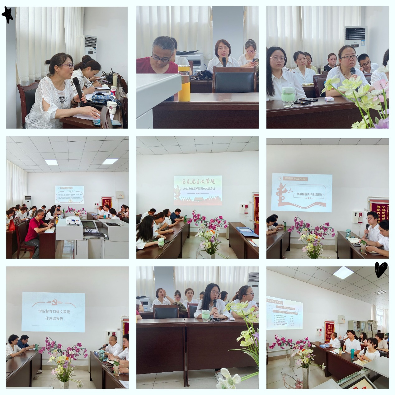 2022年06月21日上午10点至12点,在马克思主义学院办公室召开了2022年春季学期期末总结会议。专兼职老师共26人参与会议,活动由马克思主义学院概论课教研室主任杨羚主持。