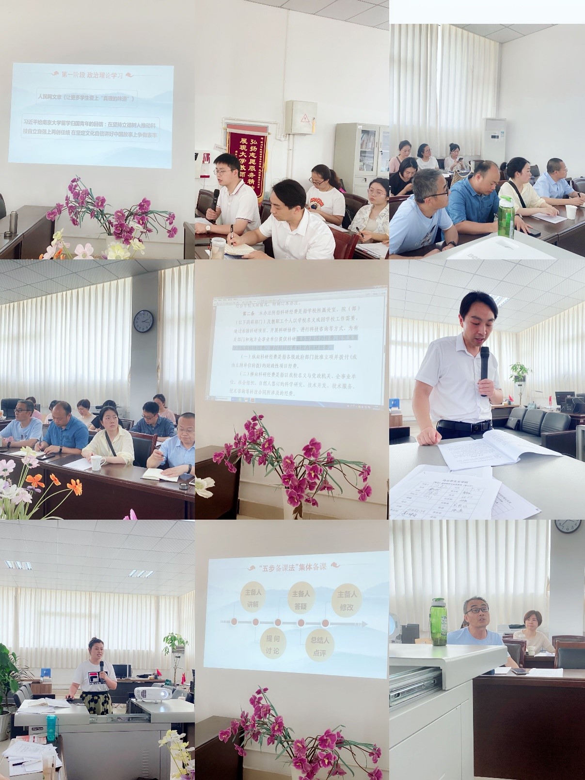 第一阶段,教研活动开始前,副院长杨斌带领各位老师深入学习了让更多学生爱上“真理的味道”和习近平给南京大学留学归国青年的回信等两篇文章。强调党的十八大以来,以习近平同志为核心的党中央立足全局和战略高度,高度重视大学生思想政治教育,发表了系列重要讲话并密集出台了大量关于思想政治教育的政策性文件作为配套支撑。我院教师应该抓住机遇,守正创新,打造新时代思政“金课”,提升思政课的质量与水平。