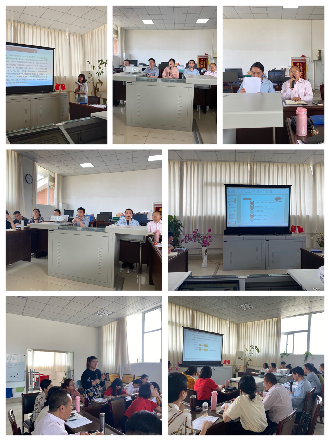第三阶段,《概论》课教研室主任杨羚主持该课程教研活动。第一项为动员全体教师积极参加我校积极举行的教学技能大赛,本次大赛的负责人张羽老师介绍了参赛细则等,并表示学院将竭尽所能为各参赛队伍做好后勤保障工作。第二项为研讨教材第二章新民主主义革命理论的内容。本次备课创造性地采用了“五步备课法”进行集体备课,由杨斌老师担任主持人。第一步:杨羚老师向各位老师汇报了自己的备课情况。杨羚老师主张打乱教材原有顺序,用“三条进路”串联本章内容,并对重难点以及如何破解重难点进行了陈述。第二步:参会老师根据杨羚老师的讲解内容提问。会议现场,各与会教师准备充分,发挥个人特长,集思广益,针对杨羚老师所讲解的内容进行了有针对性的探讨,贡献了很多有见地的思路和智慧,对本章的教学工作很有启发。例如,刘建文教授提出,应进一步考虑“3 个 3 理论”如何讲清楚。符红川教授谈到可以从民主革命的基本概念出发来讲解新旧民主主义革命的区别,以此突破难点。程征老师提出在课件中必须进一步规范和纠正“四次失败”的提法,避免让学生产生错误的理解。王咏华老师建议课件可以进一步结构化,应最大限度发挥时间轴和思维导图两大“利器”的作用。第三步:杨羚老师根据各位老师提出的问题和意见进行了答疑和陈述。第四步:总结人杨斌从总体出发对本次集体备课进行了总结,充分肯定了本次集体备课的效果,勉励各位老师注重通盘阅读教材,备“好”课就必须要用好教材,促进教师的专业化发展。第五步:杨羚老师将各位老师的意见收集汇总,会后将再次修改课件,供各位老师共同使用,以期建成适合医专马院使用的课程资源,丰富我院资源库,实现资源共享。